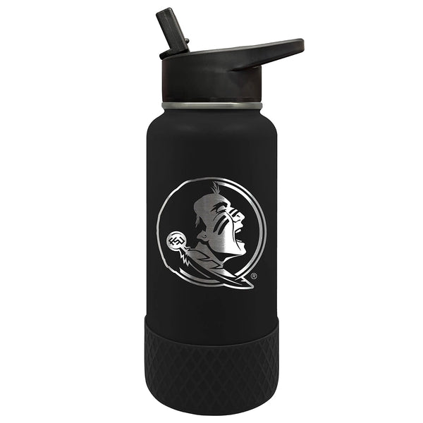 Material | Stainless Steel. Color | Black. 32oz water bottle with etched Seminole Head Florida State Seminoles.