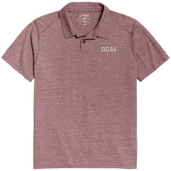 Material | 80% Polyester, 20% Cotton. Color | Heathered Maroon. Men's heathered polo with embroidered Doak.