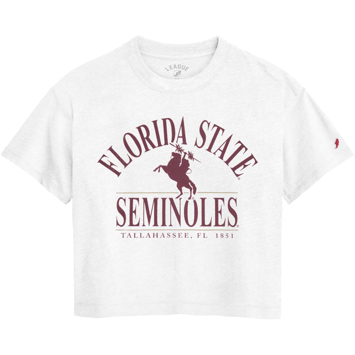 League Women's Florida State Seminoles Unconquered Silhouette Design Crop Short Sleeve T-shirt - White - White / MD is backordered and will ship as soon as it is back in stock.