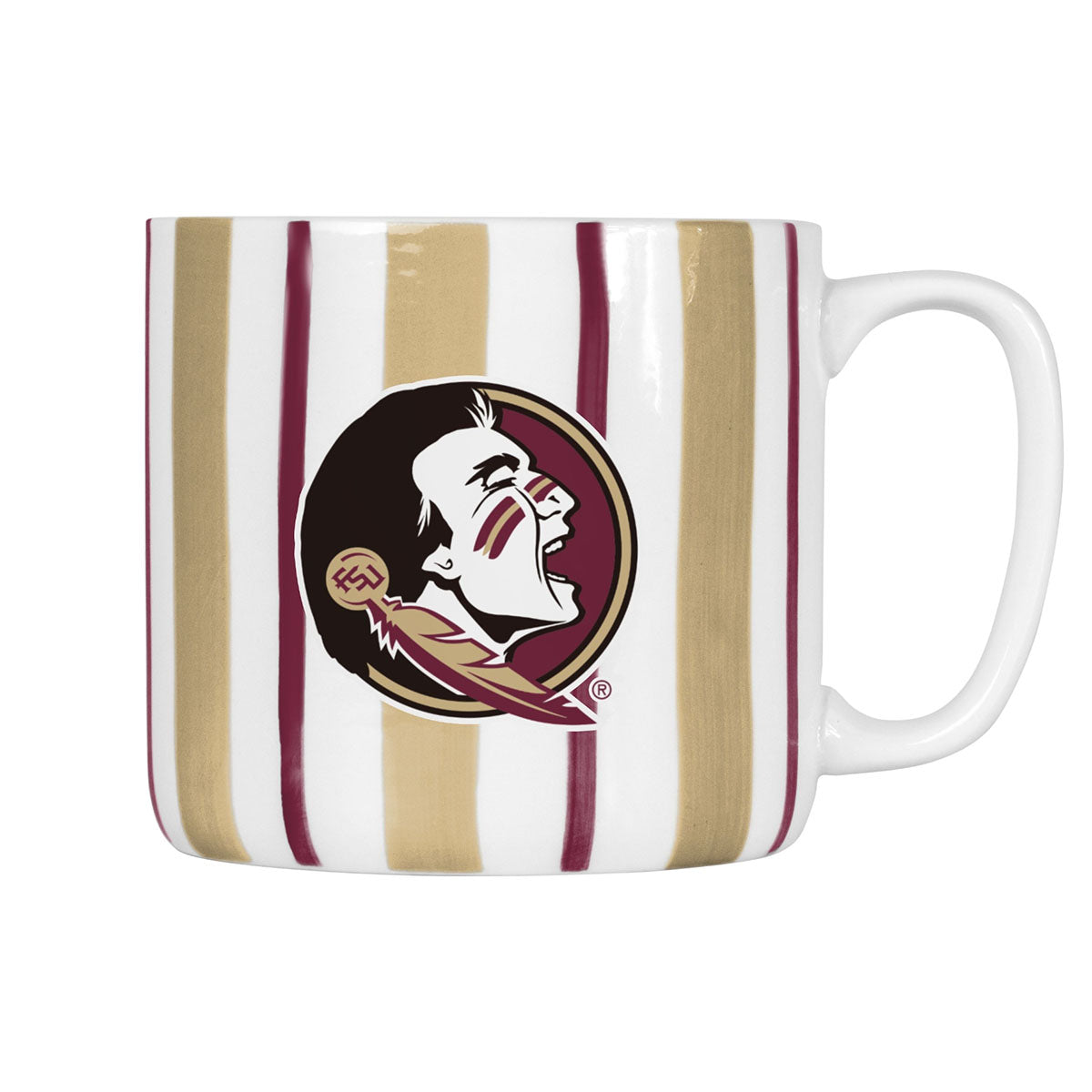 Material | 100% Ceramic. Color | White. 16oz stripe mug with Seminole Head.