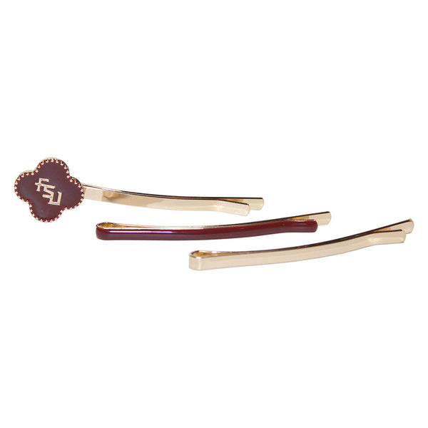 Quatrafoil bobby pins with Stacked FSU.