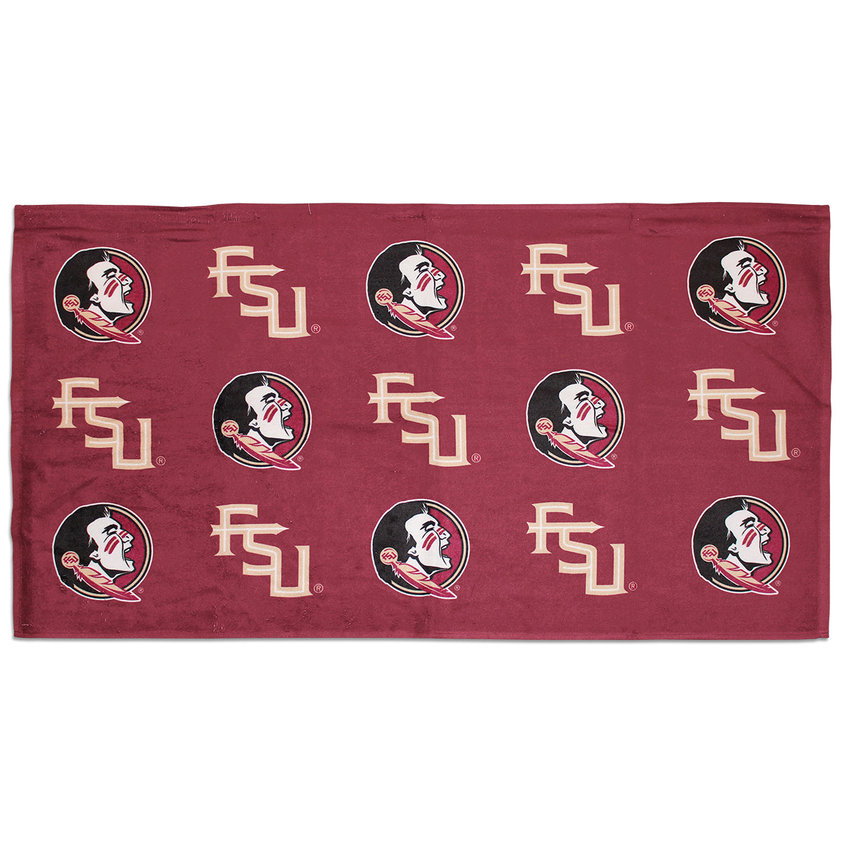 Material | 52% Cotton, 48% Polyester. Color | Garnet. Fitness towel with sublimated Stacked FSU, Seminole Head design.