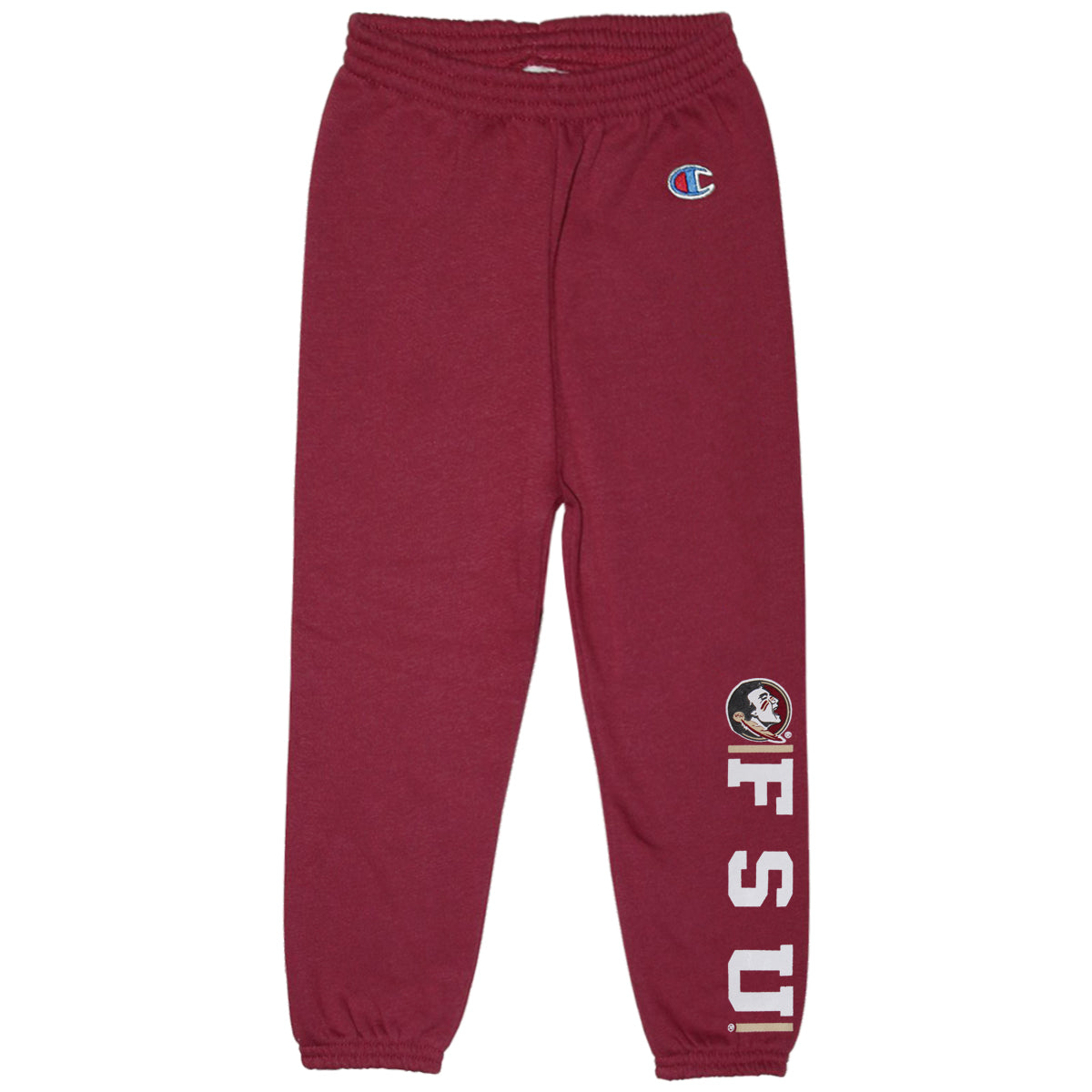 Material | 60% Cotton, 40% Polyester. Color | Garnet. Champion infant/toddler sweatpant with screen printed Seminole Head FSU.