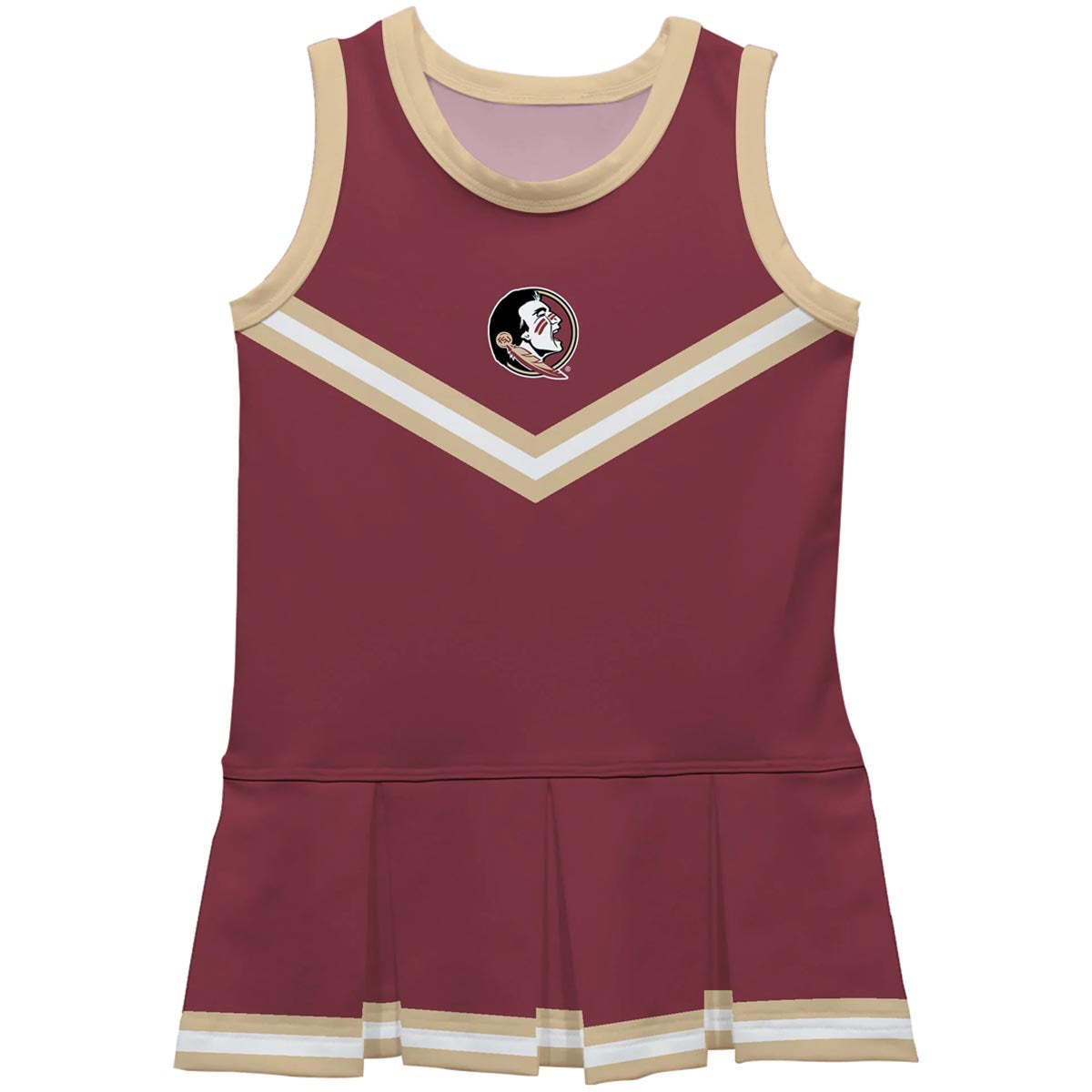 Material | 92% Polyester, 8% Spandex. Color | Garnet. Toddler sublimated cheerdress with Seminole Head.