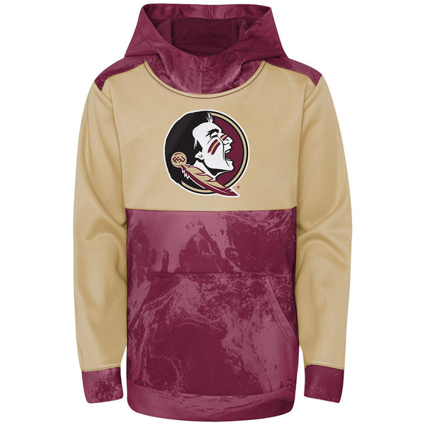 Material | 100% Polyester. Color | Garnet/Gold. Kids performance hood with screen printed Seminole Head. Screen printed Florida State on hood.Pocket.
