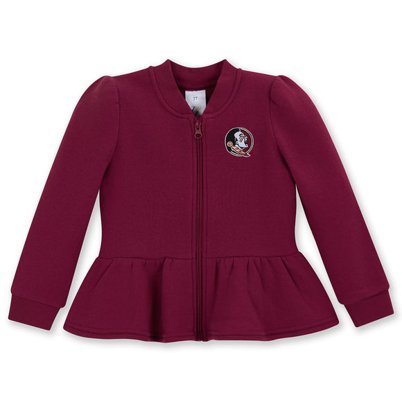 ZooZatz Toddler Girl's Seminole Logo Peplum Full-Zip Crew Fleece - Garnet