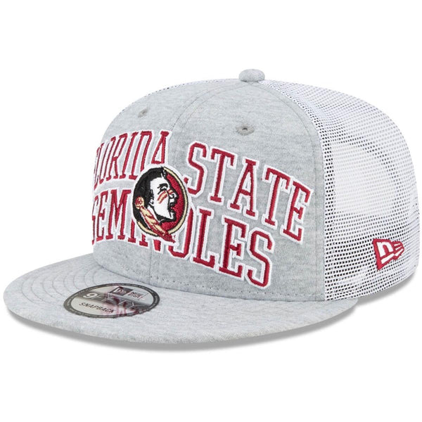 New Era Florida State Seminoles/Seminole Logo 9Fifty Flat Bill Snapback Trucker Cap - Grey - GREY is backordered and will ship as soon as it is back in stock.