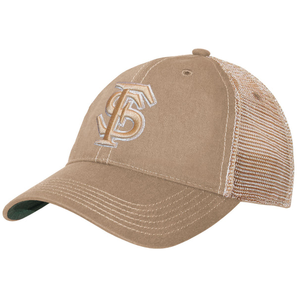 Legacy Florida State Interlocking FS Logo Adjustable Relaxed Trucker - Khaki - Khaki is backordered and will ship as soon as it is back in stock.