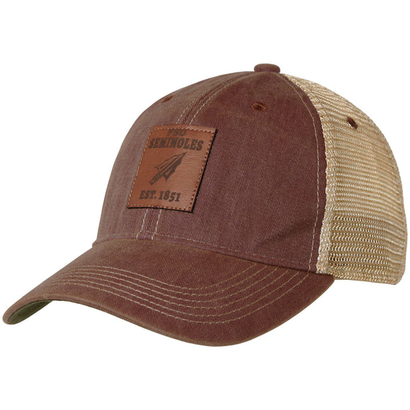 Legacy FSU Seminoles Arrowhead Leather Patch Adjustable Trucker Cap - Garnet