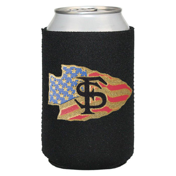 Can holder with Veteran Alliance Arrowhead. The Veterans Alliance arrowhead is the proud symbol of Florida State University's campus-wide commitment to become a national beacon of veteran support and success. A portion of the proceeds from the sale of this merchandise supports veterans at FSU. For more information, please visit: veterans.fsu.edu.