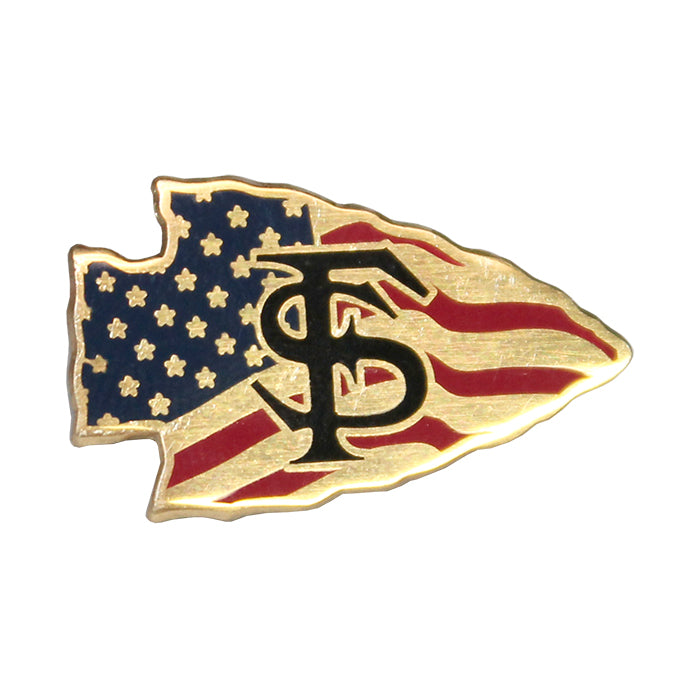 Veterans Alliance arrowhead lapel pin with clutch back . The Veterans Alliance arrowhead is the proud symbol of Florida State University's campus-wide commitment to become a national beacon of veteran support and success. A portion of the proceeds from the sale of this merchandise supports student veterans at FSU. For more information, please visit: veterans.fsu.edu.