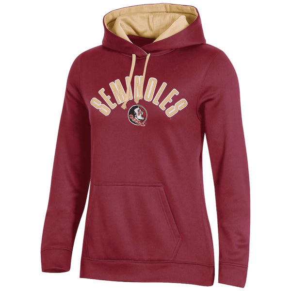 Material | 60% Cotton, 40% Polyester. Color | Garnet/Gold. Champion women's hood with applique embroidered Seminoles Seminole Head. Pocket.