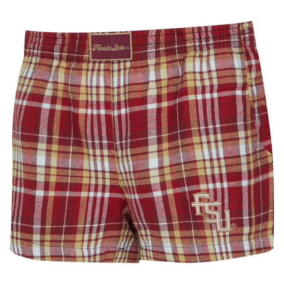 Concept Sports Women's Stacked FSU Woven Plaid Short - Garnet/Gold/White