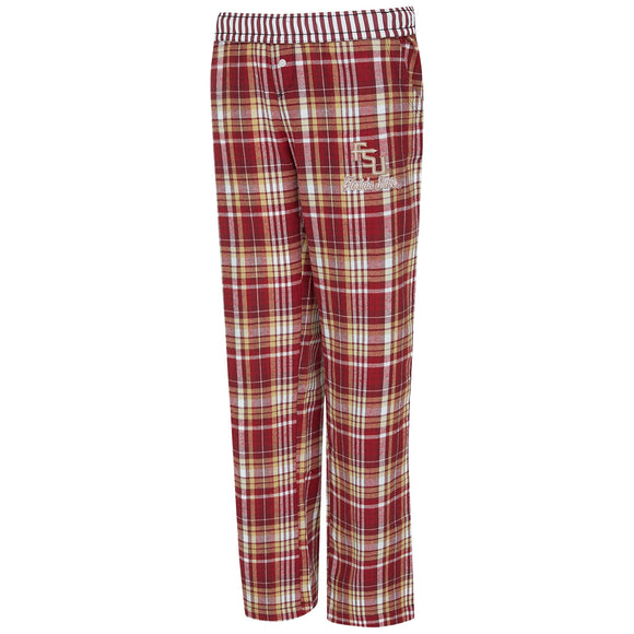 Concept Sports Women's Stacked FSU/Florida State Woven Plaid Pant - Garnet/Gold/White