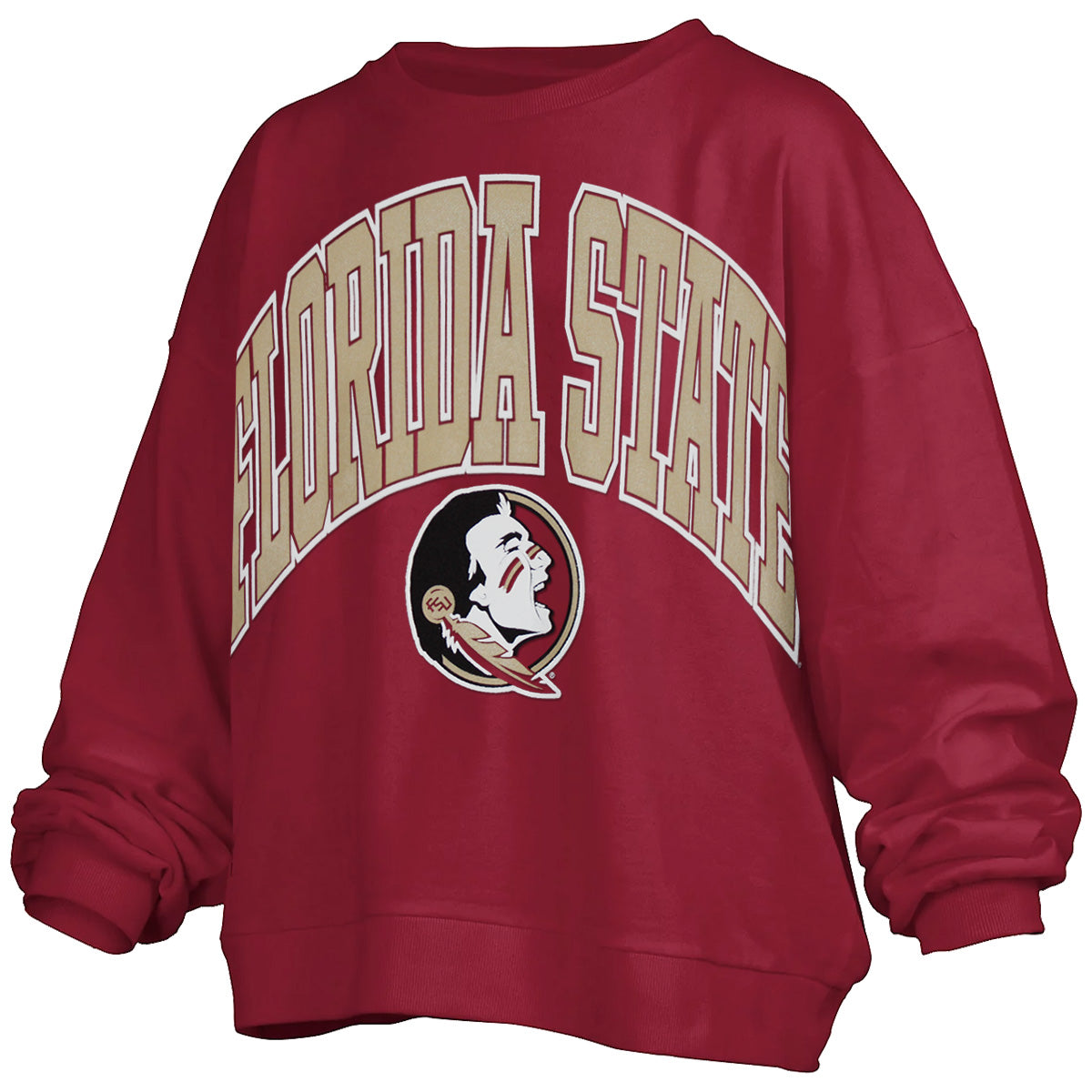 Pressbox Women's Florida State Seminole Logo Oversized Fleece Crew - Garnet