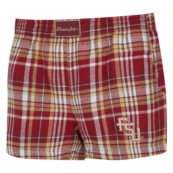 Concept Sports Women's Stacked FSU Woven Plaid Short - Garnet/Gold/White - Garnet/Gold/White / SM is backordered and will ship as soon as it is back in stock.
