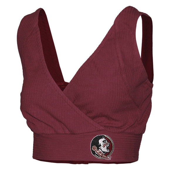 Emerson Street Women's Seminole Logo Ribbed Bra Top - Garnet