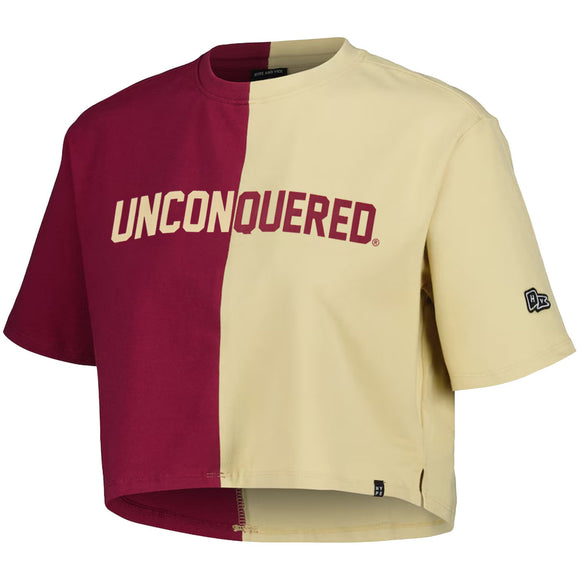 ZooZatz Women's Florida State Seminoles Short Sleeve Colorblock Crop T-shirt - Garnet/Gold