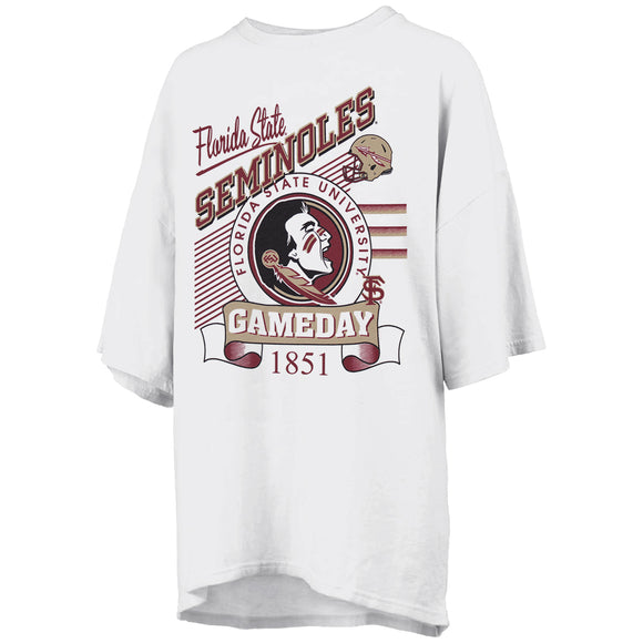 Pressbox Women's Florida State Seminoles/Seminole Logo Gameday Design Oversized Short Sleeve T-shirt - White