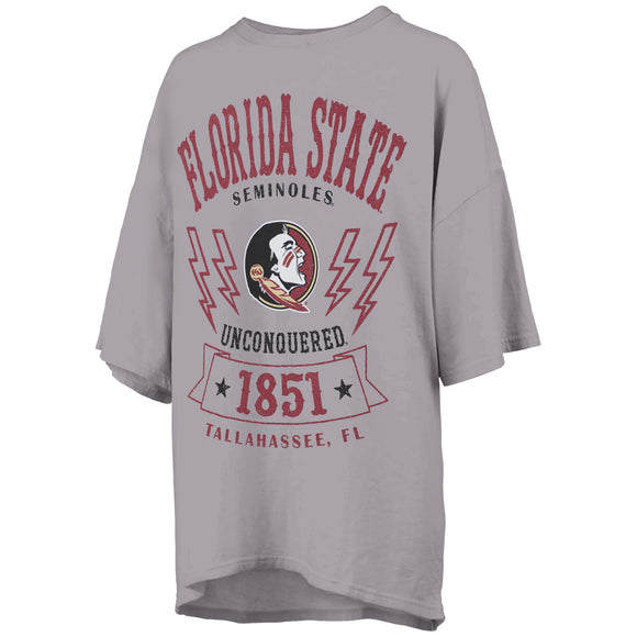 Pressbox Women's Florida State Seminoles Seminole Logo Lightning Bolt Design Oversized Short Sleeve T-shirt - Silver