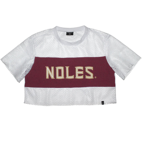 Hype & Vice Women's Noles Short Sleeve Mesh Crop Top - White/Garnet