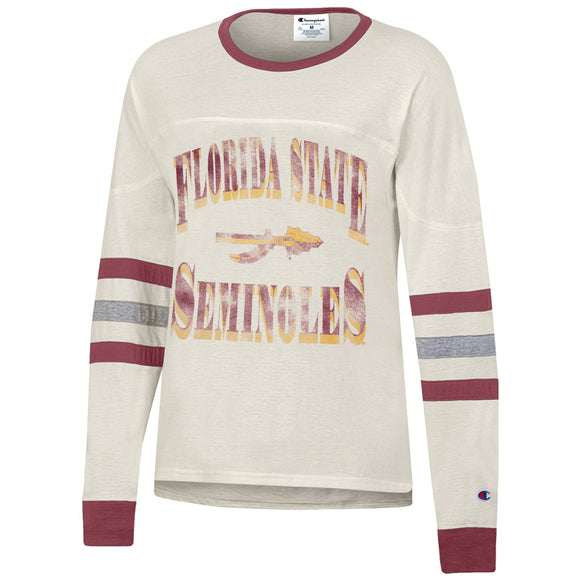 Champion Women's Vault Florida State Seminoles Spear Design Throwback Long Sleeve T-shirt - Off White/Garnet