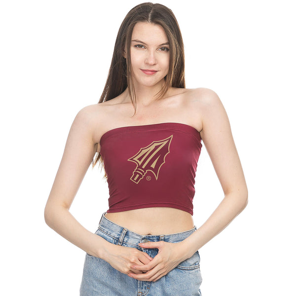 Material | 87% Polyester, 13% Spandex. Color | Garnet. Women's sublimated tube top with Arrowhead.