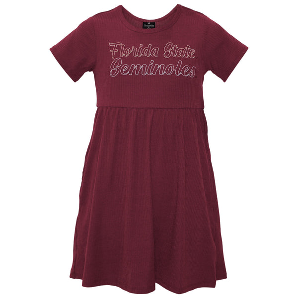 Colosseum Youth Girl's Florida State Seminoles Ribbed Dress - Garnet - Garnet / YXS is backordered and will ship as soon as it is back in stock.