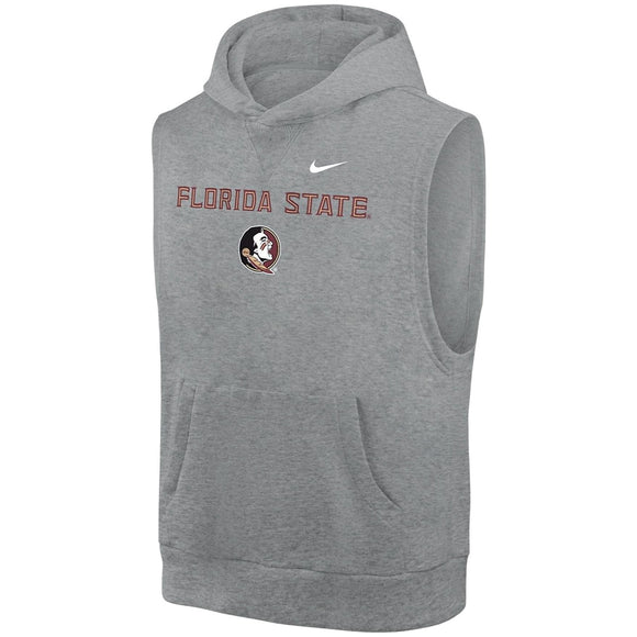 Nike Youth Florida State Seminole Logo Sleeveless Club Fleece Hood - Dark Grey Heather