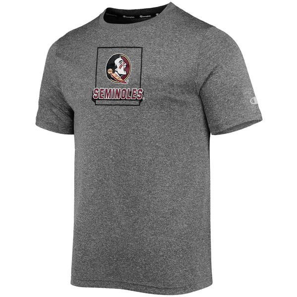 Material | 100% Polyester. Color | Slate. Champion youth short sleeve performance t-shirt with screen printed Seminole Head Seminoles.