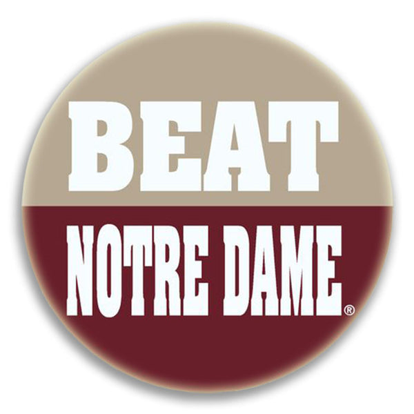 3" BEAT NOTRE DAME BUTTON is backordered and will ship as soon as it is back in stock.