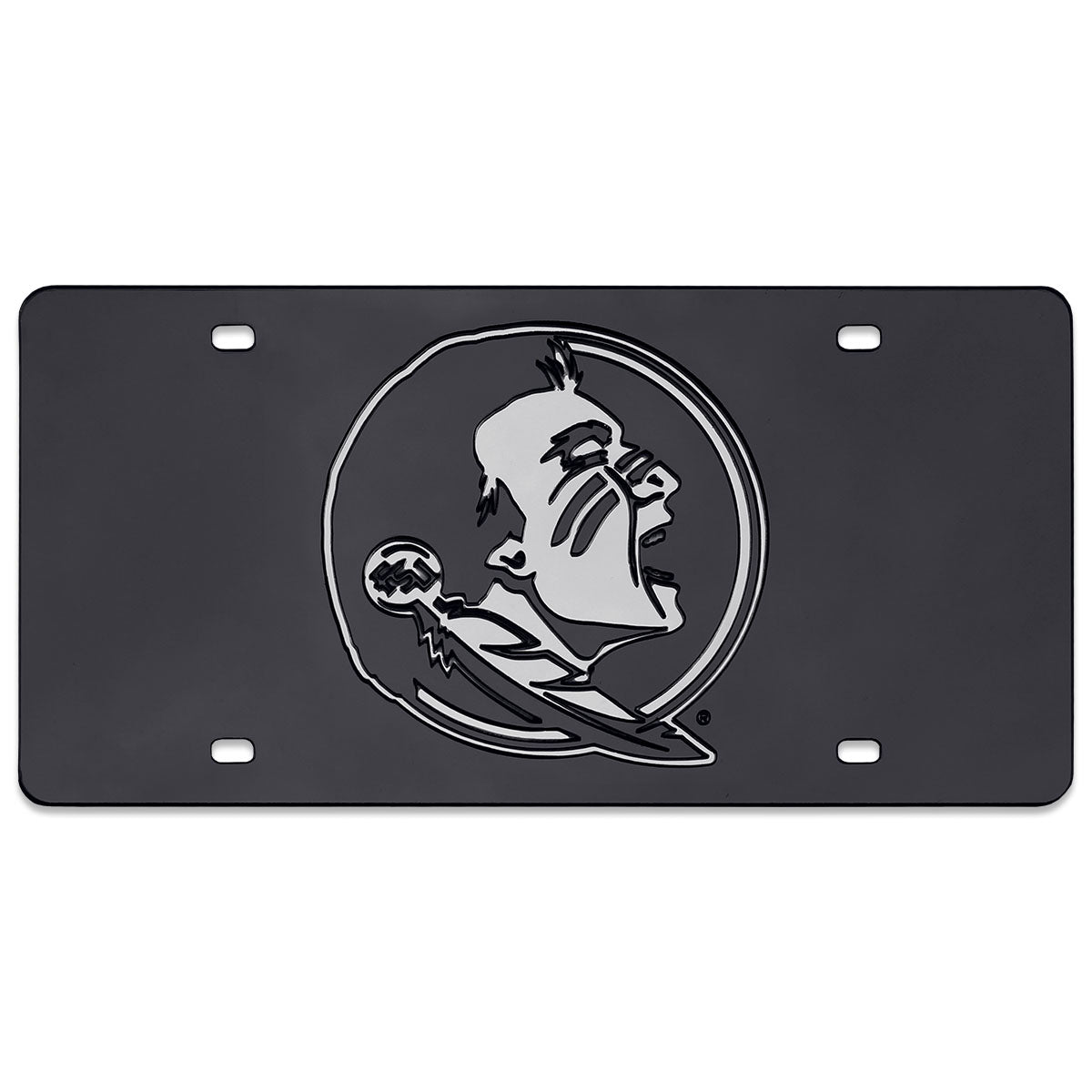 Material | 100% Acrylic. Color | Black. Mirrored license tag with silver Seminole Head.