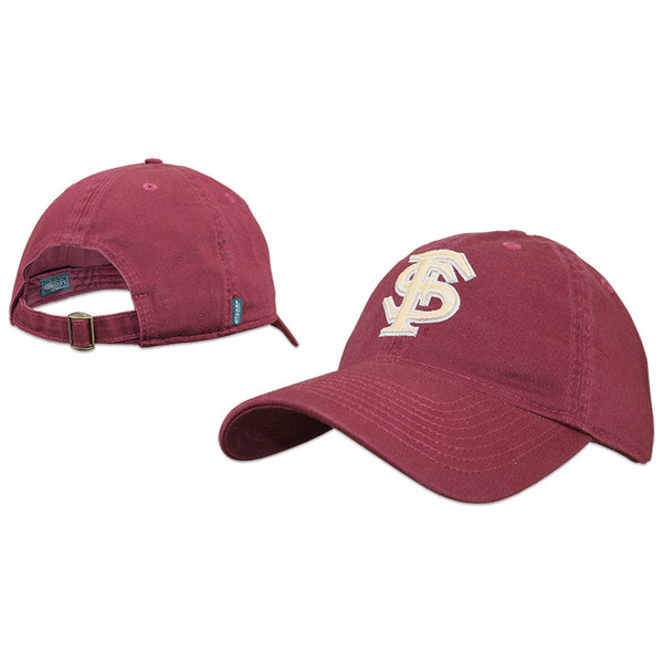 Material | 100% Cotton Twill. Color | Garnet. Adjustable relaxed twill cap with 3D embroidered Interlock FS. Unstructured, low profile fit. Full top stitching, self-fabric sweatband and taping, and a premium, hi-density visor board. Fabric strap closure with antique brass slide buckle.