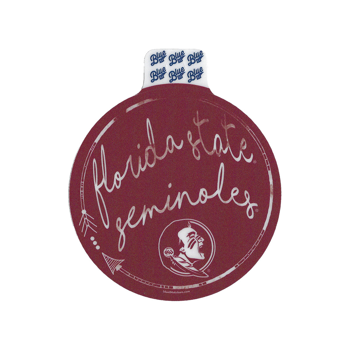 Blue 84 Round 4" Decal with Florida State Seminoles Seminole Head. Made with vinyl with 5 year exterior durability - water and scratch resistant. Perfect for any application.