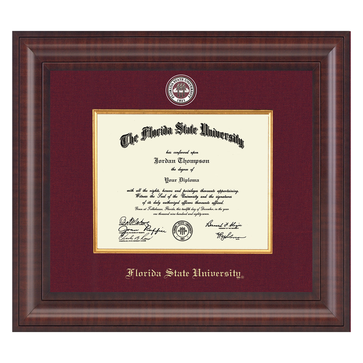 Design features a Masterpiece seal medallion and Florida State University embossed below on archival-quality maroon linen mat.