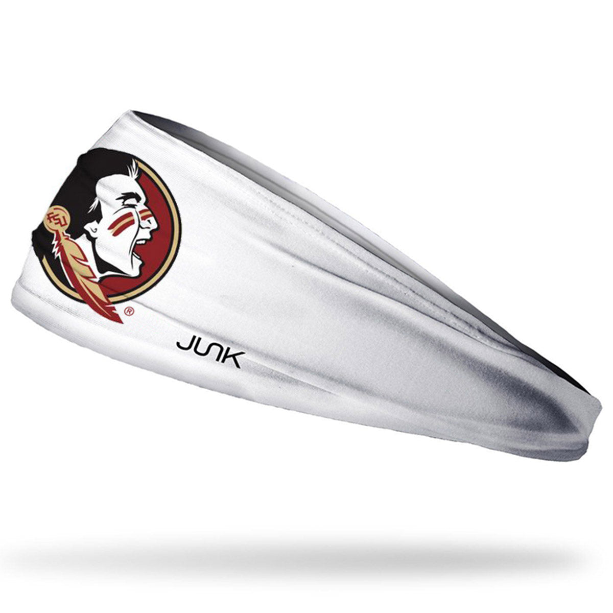 Material | 89% Polyester, 11% Spandex. Color | White. Seminole Head headband. JUNK’s Technical T-Shirt fabric is a breakthrough technology specifically designed to keep you cool while emulating a super comfortable t-shirt feel. This is the best athletic headband you'll ever wear! One size fits most. White on the inside. Machine washable. Lightweight, single ply. Breathable, soft & cool against the skin. Wicking to help pull sweat away from the skin & quickly dry.