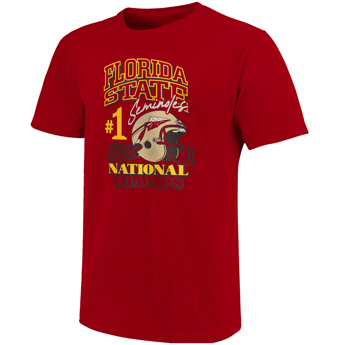 Image One Adult/Unisex Vault Florida State Seminoles 1993 National Champs Helmet Design Short Sleeve T-shirt - Cardinal - Cardinal / MD is backordered and will ship as soon as it is back in stock.