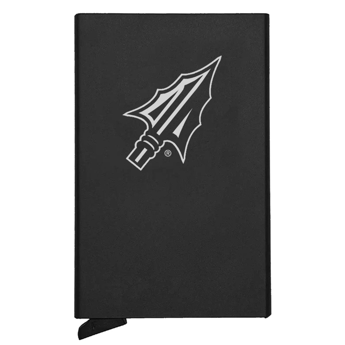 Metal wallet with screen printed Arrowhead. Holds 5 credit cards.