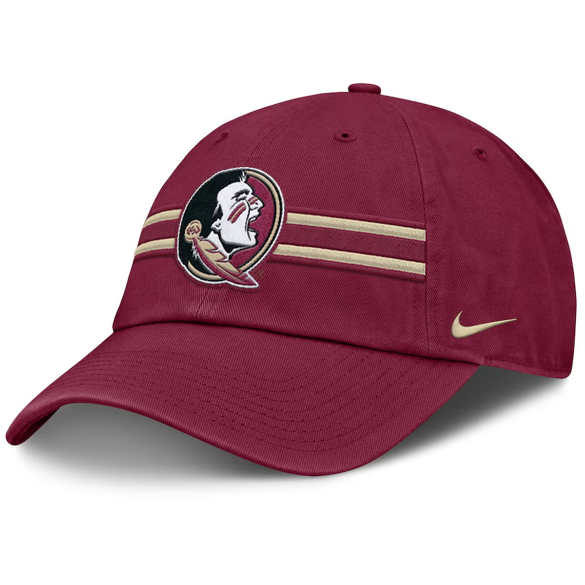 Nike Men's Seminole Logo Stripe Design Adjustable Club Academic Unstructured Hat - Garnet