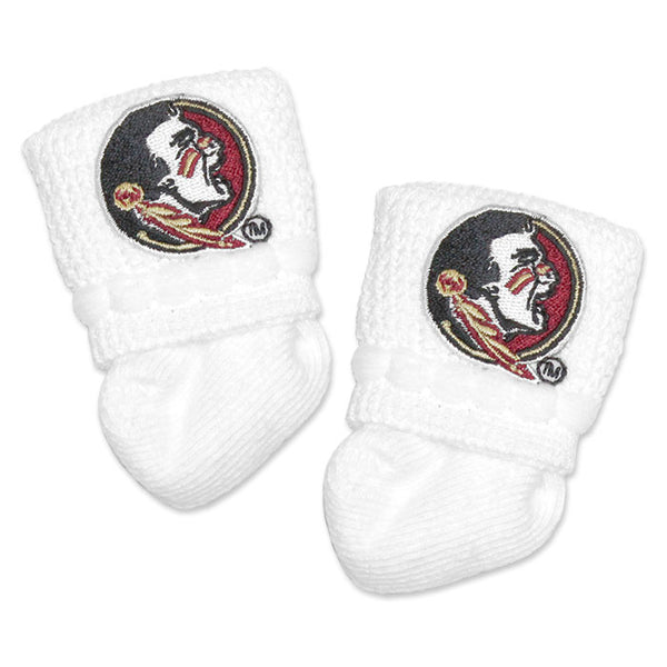 White No Slip Off Booties Feature Seminole Logo on Ankle