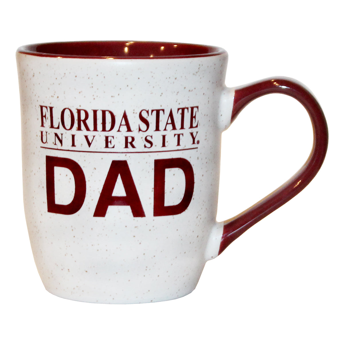 Material | 100% Ceramic. Color | White/Garnet. 16oz granite ceramic mug with Florida State University Dad.