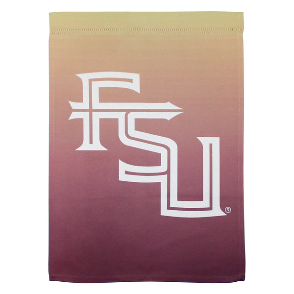 13" x 18" silk screened garden flag with Stacked FSU gradient design.