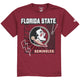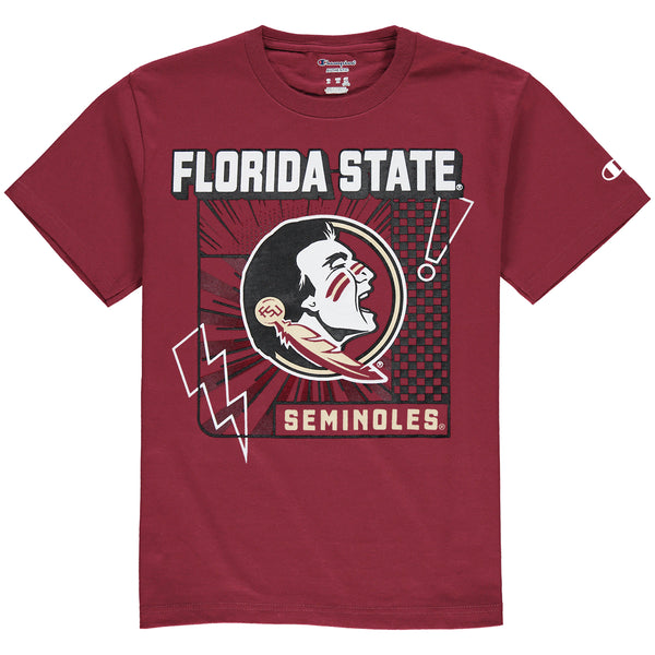 Material | 60% Cotton, 40% Polyester. Color | Garnet. Champion toddler short sleeve t-shirt with screen printed Florida State Seminoles Seminole Head design.
