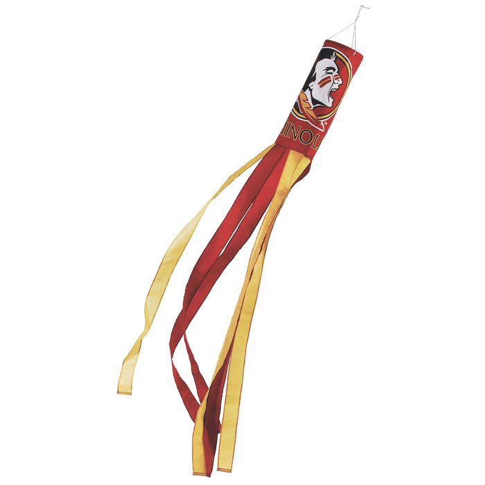Material | 100% Polyester. Color | Garnet. Windsock with 6 garnet and gold streamers, Seminole Head Seminoles printed on it. The streamers are 60" long.